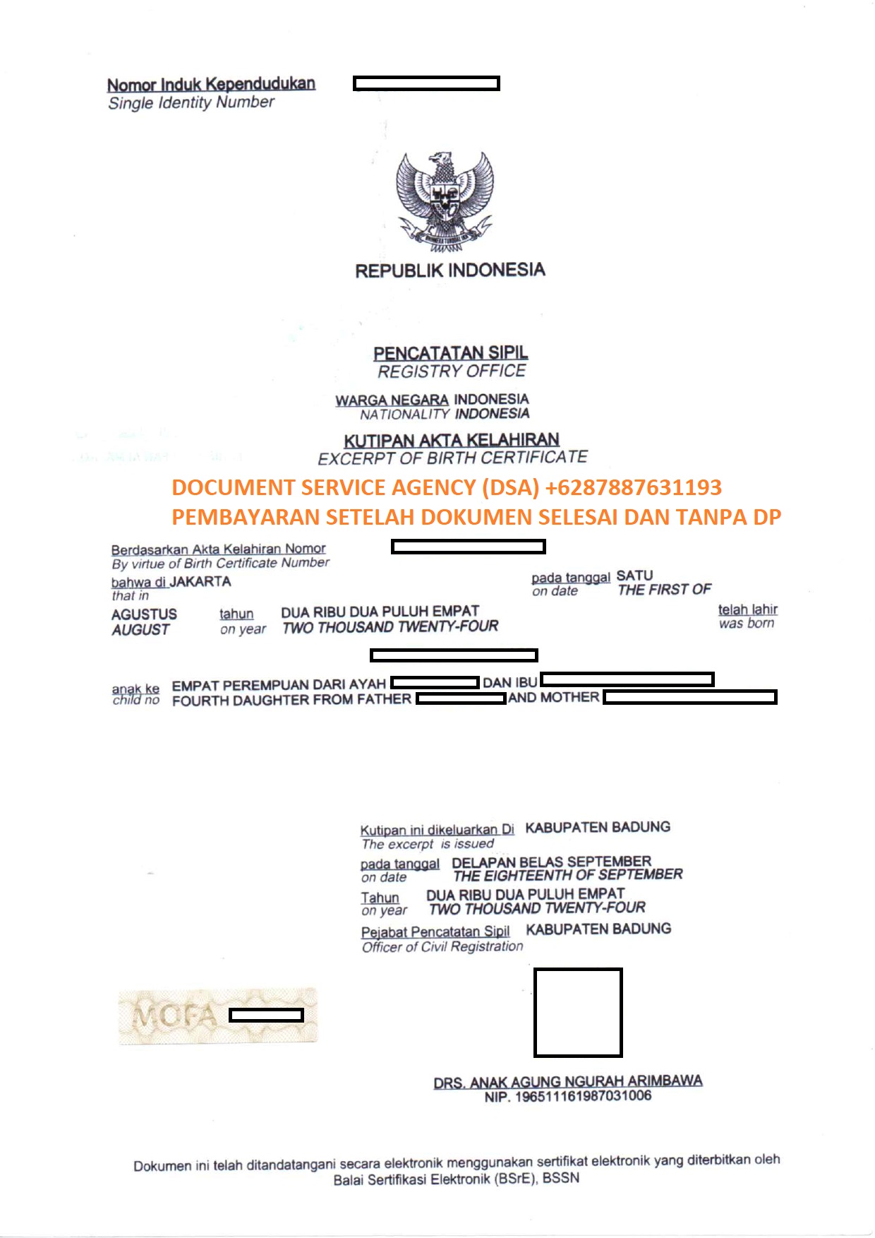 Telp/ Whatsapp : 021 48671259/ +62 878 8763 1193 atau email : documentsserviceagency@gmail.com
