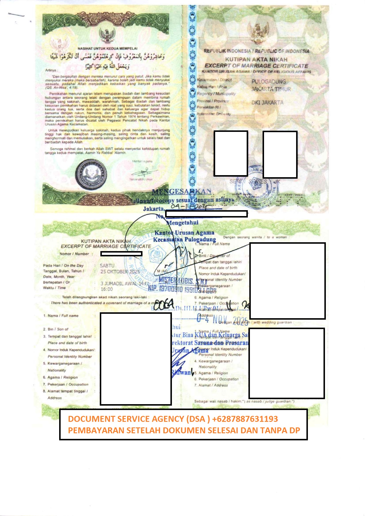 Telp/ Whatsapp : 021 48671259/ +62 878 8763 1193 atau email : documentsserviceagency@gmail.com