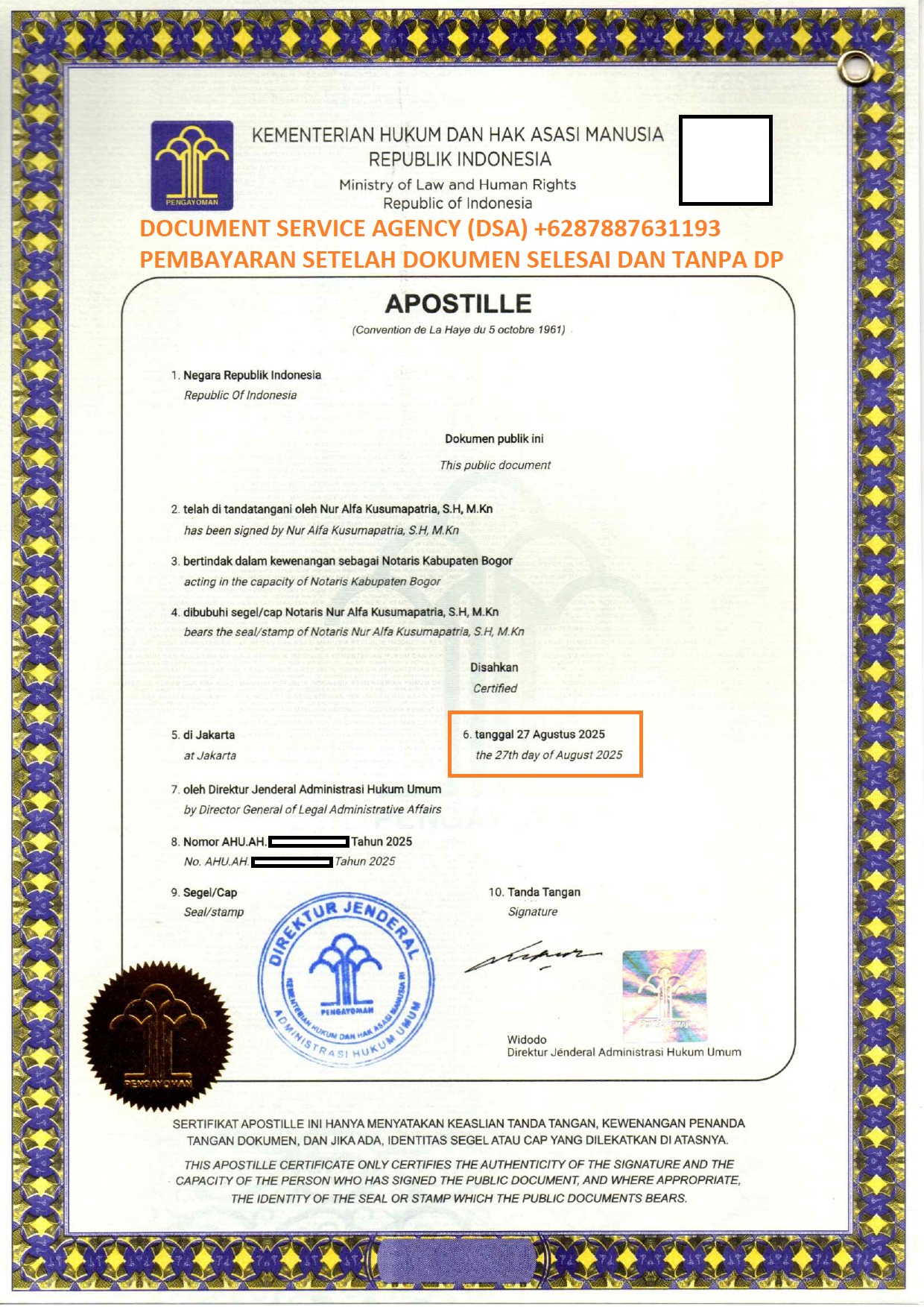 Telp/ Whatsapp : 021 48671259/ +62 878 8763 1193 atau email : documentsserviceagency@gmail.com