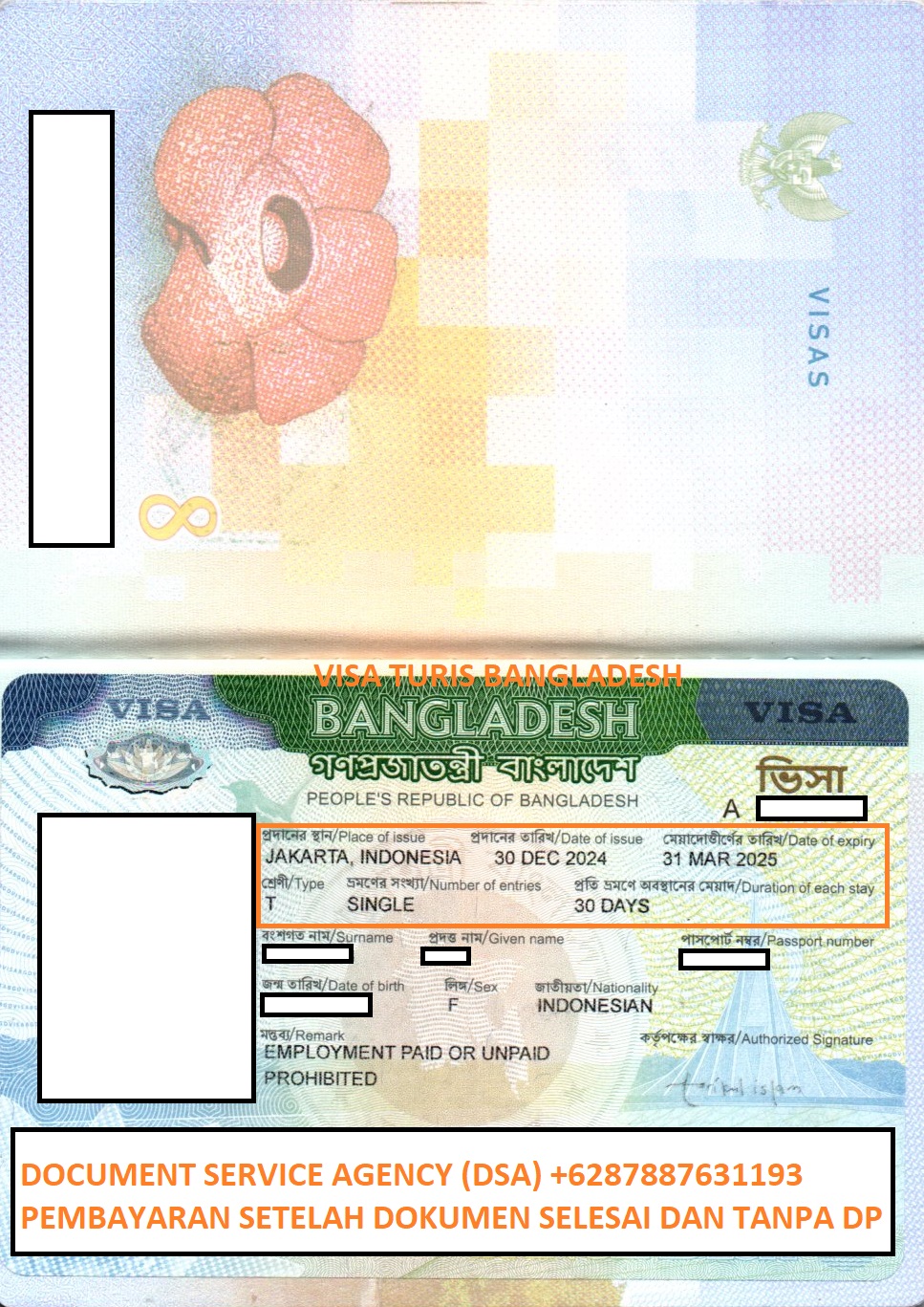Document Service Agency (DSA) adalah profesional jasa terjemah, legalisir, apostile dokumen dan pengurusan visa terpercaya dan berpengalaman. Bagi anda yang ingin berkunjung ke Bangladesh dalam rangka wisata tidak perlu datang ke Jakarta untuk pengurusan visa atau dokumen lainnya, karena pengurusan visa bisa diwakilkan ke kami.